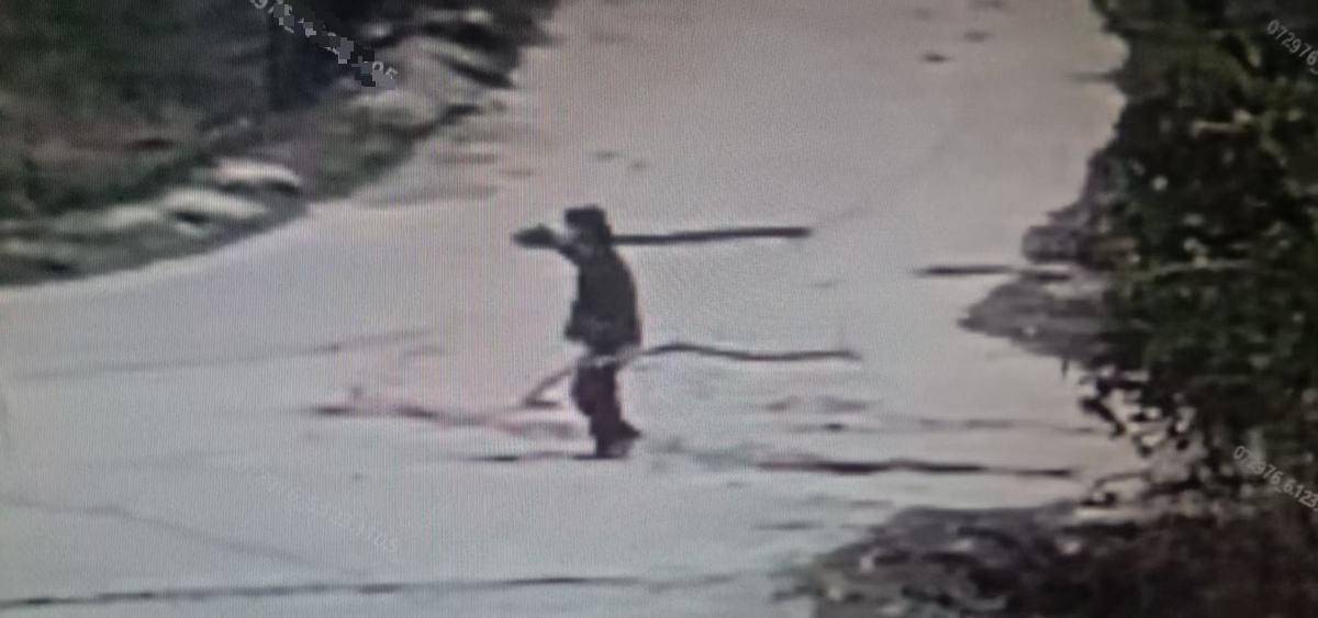 事发后,监控拍下的被告人曾某某扛柴火回家